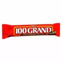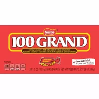 100 Grand is a candy bar produced by the Ferrara Candy Company, a subsidiary of Ferrero. The candy bar was created in 1964. It weighs 1. 5 ounces and includes chocolate, caramel and crisped rice. The bar contains 201 calories; it is low in cholesterol and sodium, but high in saturated fat and sugar.