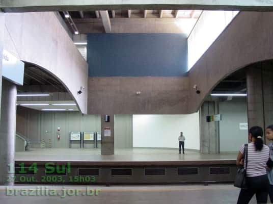 114 Sul is a Federal District Metro brazilian station on Orange and Green lines. It was opened on 31 March 2001 on the inaugural section of the line, from Central to Terminal Samambaia and Praça do Relógio. It is located between 112 Sul and Terminal Asa Sul.