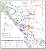 In the days leading up to June 19, 2013, Alberta, Canada, experienced heavy rainfall that triggered catastrophic flooding described by the provincial government as the worst in Alberta's history.