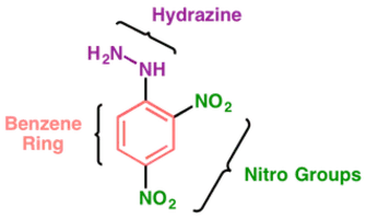 2,4-Dinitrophenylhydrazine is the chemical compound C₆H₃(NO₂)₂NHNH₂. Dinitrophenylhydrazine is a red to orange solid. It is a substituted hydrazine, and is often used to qualitatively test for carbonyl groups associated with aldehydes and ketones.