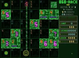 868-HACK is a 2013 roguelike video game developed and published by Michael Brough. The player controls a hacking program in a computer system and must grab as much computer data as possible before a defence program destroys it.