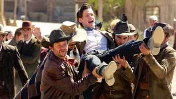 The Doctor gets a Stetson and a gun, and finds himself the reluctant sheriff of a Western town under siege by a relentless cyborg.