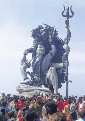 The Aazhimala Shiva Temple is a Hindu temple located on the coast of the Arabian Sea near Vizhinjam in the Thiruvananthapuram district of Kerala, India. The temple is dedicated to Shiva and is best known for its 18 metres tall Gangadhareshwara sculpture, which is the tallest sculpture of Shiva in Kerala.