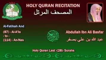 Abdullah Ibn Ali Basfar is a famous reciter and imam from the Saudi Arabia. He first rose to prominence in Jeddah as an Imam and a reciter during the Ramadan Qur'an Recitation nights. Basfar's recitation were later diffused in many Qur'an's Radio Stations and aired on Satellite TV Channels.
