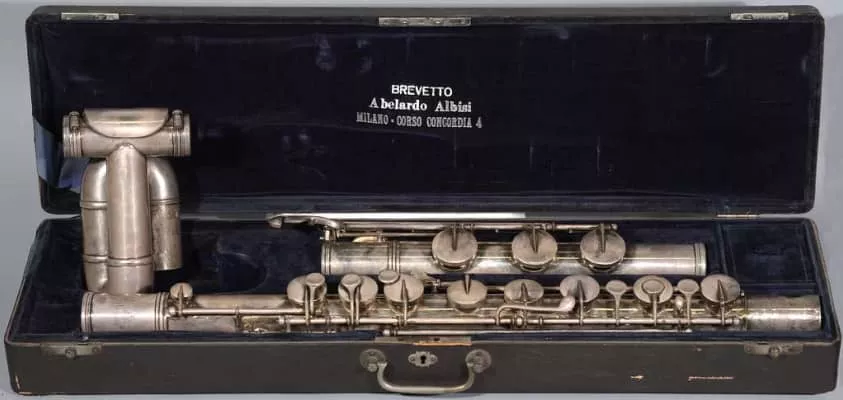 Abelardo Albisi was an Italian flutist and instrument maker and composer. He was first flutist of the orchestra at La Scala for many years. In 1910 he invented the albisiphone, a type of bass flute.