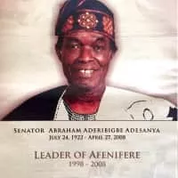 Chief Abraham Aderibigbe Adesanya was a Nigerian politician, lawyer, activist, welfarist, and liberal progressive. He was the son of a famous and powerful traditional healer, the late Oloye Ezekiel Adesanya, who lived between the 19th and 20th centuries, his mother's was Elizabeth Odiya Adesanya.