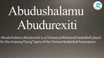 Abudushalamu Abudurexiti is a Chinese professional basketball player for the Xinjiang Flying Tigers of the Chinese Basketball Association. A native of Xinjiang, he is a member of the Uyghur ethnic group. "Abudushalamu Abudurexiti" is the Chinese Pinyin rendering of his name.