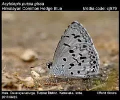 Acytolepis puspa, the common hedge blue, is a small butterfly found in Cambodia, India, Myanmar, Thailand, Yunnan, Sri Lanka, Philippines, Borneo and New Guinea that belongs to the lycaenids or blues family. The species was first described by Thomas Horsfield in 1828.