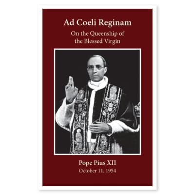 Ad Caeli Reginam is an encyclical of Pope Pius XII, given at Rome, from St. Peter's Basilica, on the feast of the Maternity of the Blessed Virgin Mary, the eleventh day of October, 1954, towards the end of the Marian year, in the sixteenth year of his Pontificate.