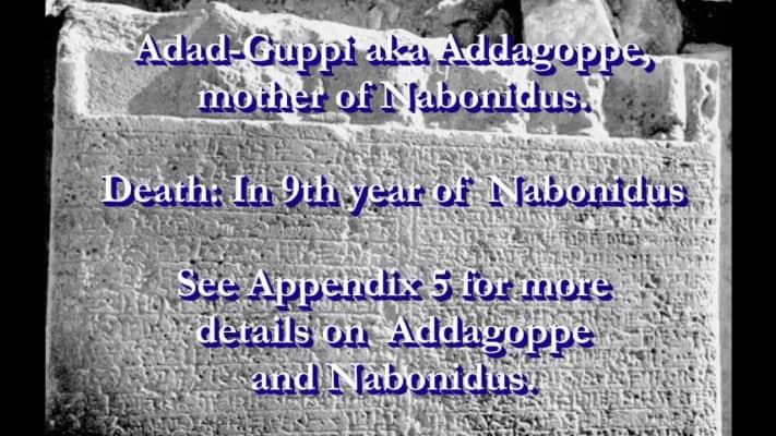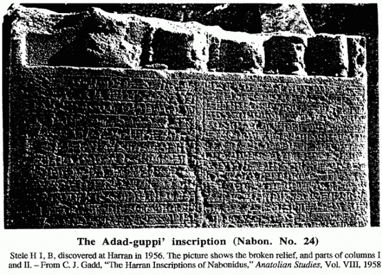 Adad-guppi, also known as Addagoppe, was a devotee of the moon god Sîn in the northern Assyrian city of Harran, and the mother of King Nabonidus of the Neo-Babylonian Empire.