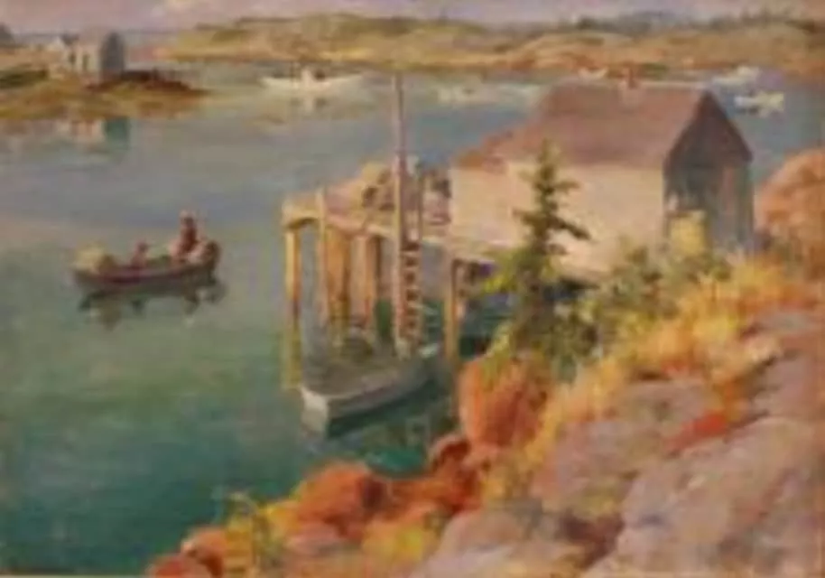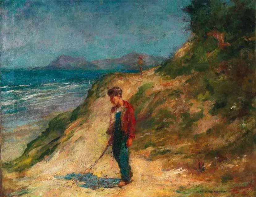 Adam Emory Albright was a painter of figures in landscapes. He was born in Monroe, Wisconsin and spent his working life in Warrenville and the Chicago area.