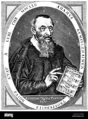 Adam Gumpelzhaimer, also Adam Gumpeltzhaimer was a Bavarian composer and music theorist. Born in Trostberg, he studied music with the monk Jodocus Enzmüller. In 1581 he became cantor at the Augsburg Cathedral; a post he maintained until his death there in 1625. He is best known for his compositions of sacred music.