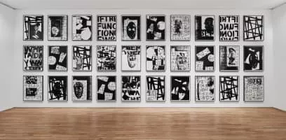 Adam Pendleton is an American conceptual artist known for his multi-disciplinary practice, involving painting, silkscreen, collage, video, performance, and word art. His work often involves the investigation of language and the recontextualization of history through appropriated imagery.