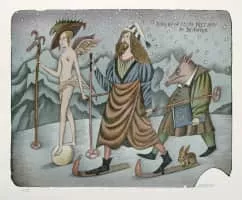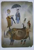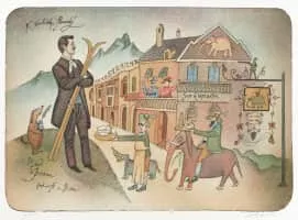 Adolf Born was a Czech painter, illustrator, filmmaker and caricaturist, "known for his murkily-tinted pictures of bizarre fauna, and Victorian gentlemen in top hats and top coats".