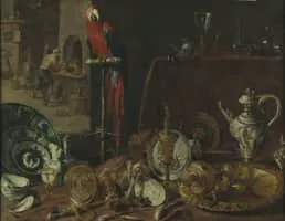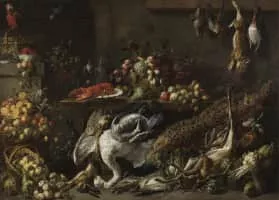Adriaen van Utrecht was a Flemish painter known mainly for his sumptuous banquet still lifes, game and fruit still lifes, fruit garlands, market and kitchen scenes and depictions of live poultry in farmyards. His paintings, especially the hunting and game pieces, show the influence of Frans Snyders.