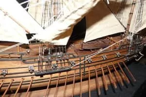 | Speed | 14 knots (16 mph; 26 km/h) under full sail; 3 knots (3. 5 mph; 5. 6 km/h) under oar, without wind |