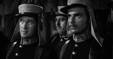 The cruel commander (C. Henry Gordon) of a French Foreign Legion outpost drives his men to mutiny.