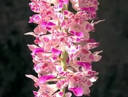 Aerides, known commonly as cat's-tail orchids and fox brush orchids, is a genus belonging to the orchid family. It is a group of tropical epiphyte orchids that grow mainly in the warm lowlands of tropical Asia from India to southern China to New Guinea.