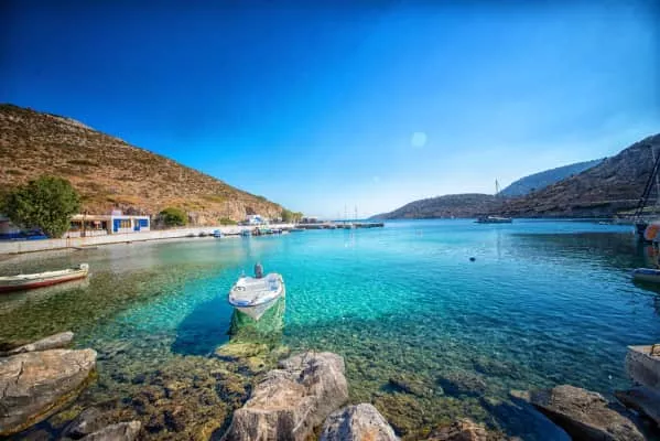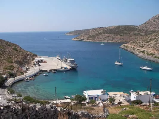 Agathonísi is a small Greek island and municipality located at the northernmost point of the Dodecanese in Greece. It is surrounded by many smaller islands and is home to two villages, both inland; Megalo Chorio, and Mikro Chorio.