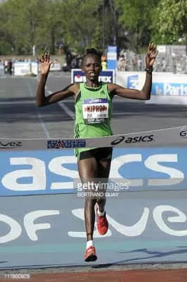 Agnes Jepkemboi Kiprop is a Kenyan long-distance runner who competes in marathon events. Initially a cross country specialist, she has focused on marathons since 2008 and has won races in Reims, Turin, Frankfurt, Prague and Hannover. She holds a personal best of 2:23:54 hours for the event.