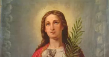| Attributes | a lamb, martyr's palm |