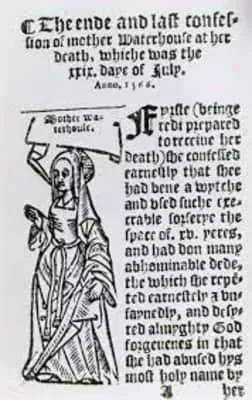Agnes Waterhouse, also known as Mother Waterhouse, was one of the first women executed for witchcraft in England. In 1566, she was accused of witchcraft along with two other women: Elizabeth Francis and Joan Waterhouse. All three women were from the same village, Hatfield Peverel.