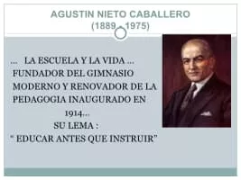 Agustín Nieto Caballero was a Colombian pedagogue who, in 1914, founded Gimnasio Moderno, a prestigious a private all-male traditional and liberal, primary and secondary school located in Bogotá, Colombia.