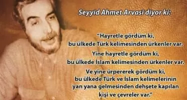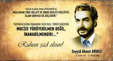Ahmet Arvasi, commonly known as Seyyid Ahmet Arvasi, was a writer and philosopher of Kurdish origin. He is known for expounding upon the ideology of the “Turkish-Islamic Synthesis Doctrine” and its effect on Turkey. He was born in Doğubeyazıt district of Ağrı, Turkey. His family is from Van Province.