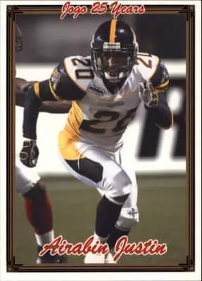 Airabin Justin is a former professional American and Canadian football defensive back. He was signed as an undrafted free agent by the Baltimore Ravens in 2003. He played college football for the University of Utah and Northern Arizona Lumberjacks.