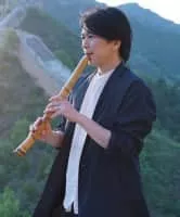 Kominato Akihisa. Born in 1978 in Fukushima Prefecture. As the eldest son of a family of master musicians in the Kominato min'yō folk ballad tradition, he was initiated by his parents at an early age and first appeared on stage at the age of five.