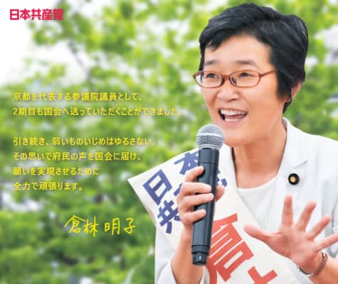 Akiko Kurabayashi is a member of the Japanese House of Councillors and member of the Japanese Communist Party. She represents the Kyoto at-large district. She is a former nurse.