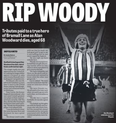 Alan Woodward was a professional footballer who played in the position of outside right for Sheffield United over a 16-year period between 1962 and 1978. Woodward or Woody as he was nicknamed, will be best remembered for his powerful shots.