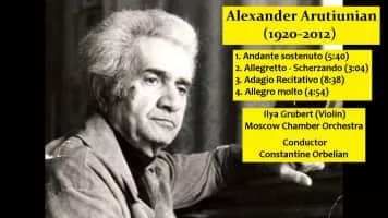 Alexander Grigori Arutiunian, also known as Arutunian, Arutyunyan, Arutjunjan, Harutyunian or Harutiunian, was a Soviet and Armenian composer and pianist, widely known for his 1950 Trumpet Concerto.