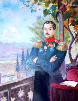 Prince Alexander Chavchavadze was a Georgian poet, public benefactor and military figure. Regarded as the "father of Georgian romanticism", he was a pre-eminent Georgian aristocrat and a talented general in the Imperial Russian service.