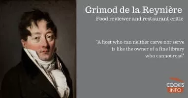 Alexandre--Laurent Grimod de La Reynière was a lawyer by qualification who acquired fame during the reign of Napoleon for his sensual and public gastronomic lifestyle. Son of Laurent Grimod de La Reynière, he inherited the family fortune on the death of his father, a fermier général, in 1793.