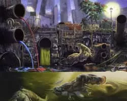 Alexis Rockman is an American contemporary artist known for his paintings that provide depictions of future landscapes as they might exist with impacts of climate change and evolution influenced by genetic engineering.