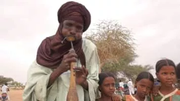 The algaita is a double reed wind instrument from West Africa, especially among the Hausa and Kanuri peoples. Its construction is similar to the oboe-like rhaita and the zurna. The algaita is distinguished from these other instruments by its larger, trumpet-like bell.