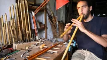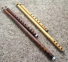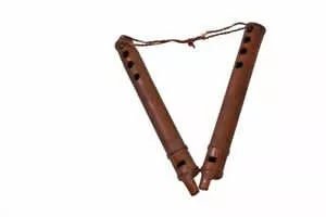 Alghoza is a paired woodwind instrument. It is traditionally used by Baloch, Saraiki, Sindhi, Kutchi, Punjabi and Rajasthani folk musicians. It consists of two joined beak flutes, one for melody, the second for drone. The flutes are either tied together or may be held together loosely with the hands.
