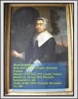 Alice Carpenter was the widow of Edward Southworth, whom she married in Leyden on 28 May 1613, mother of Thomas and Constant, born in Leyden. She came to the colonies on the Anne with a Mr Snow and her son, Thomas Southworth.