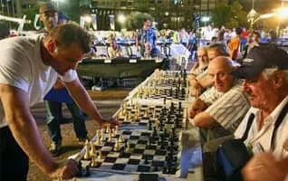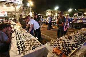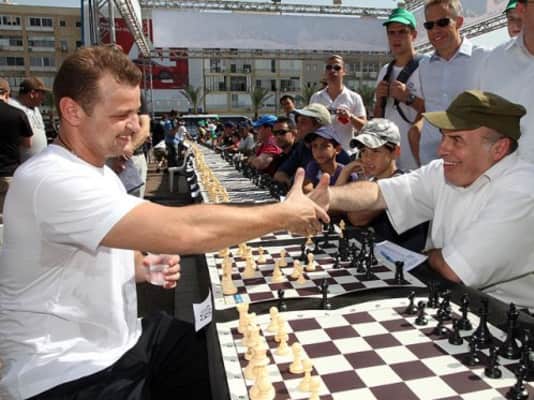 Alik Gershon is an Israeli chess grandmaster. On 21 October 2010 he set the Guinness World Record for simultaneous games after playing 523 opponents in Tel Aviv. After 18 hours and 30 minutes, he won 454 games, lost 11 and drew 58. On 9 February 2011 his record was broken by Iranian chess player Ehsan Ghaem-Maghami.