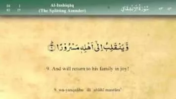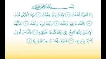 Sūrat al-Inshiqāq is the eighty-fourth chapter of the Qur'an with 25 ayat. It mentions details of the Day of Judgment when, according to the chapter, everyone will receive reckoning over their deeds in this world.