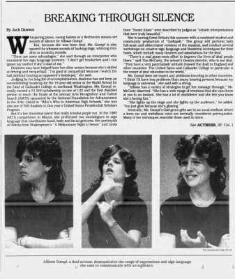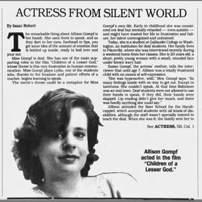 | Movies/Shows | Children of a Lesser God |