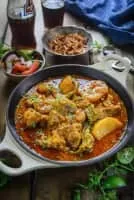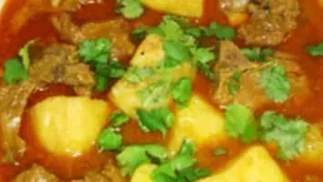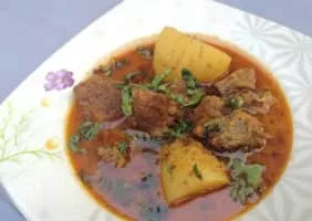 Aloo gosht is a meat curry, originating from the Indian subcontinent, and popular in Pakistani, Bangladeshi and North Indian cuisine. It consists of potatoes cooked with meat, usually lamb or mutton, in a stew-like shorba gravy.