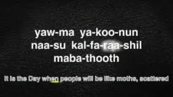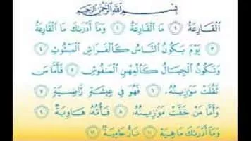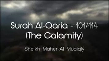 Al-Qāriʻah is the 101st chapter of the Quran with 11 verses. This chapter takes its name from its first word "qariah", referring to the Quranic view of the end time and eschatology. "Qariah" has been translated to calamity, striking, catastrophe, clatterer, etc.