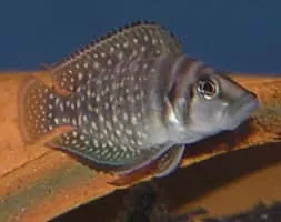 Altolamprologus calvus is a cichlid endemic to the southern shoreline of Lake Tanganyika in eastern Africa. The species has an extremely laterally compressed body and a high dorsal fin. Males may grow to 13 cm, while females are normally smaller.