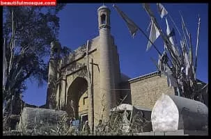 The Altyn Mosque is a mosque in Yarkand in Yarkant County, Xinjiang, China. It is noted for its painted ceilings and the tomb of the poet Amannisa Khan which is in its courtyard. She was the wife of one of the local Khans. Beyond the mosque is a cemetery housing the tombs of the Khans of Yarkand.