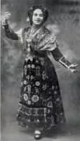 Amalia Molina was a popular Spanish tonadillera and dancer. Raised in Triana, she moved at a young age to Madrid, where she debuted at the age of 17. Her career took her to Latin America and even Broadway. In Paris she premiered in the opera, Goyescas. She starred in the film, Malvaloca.