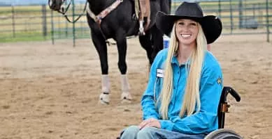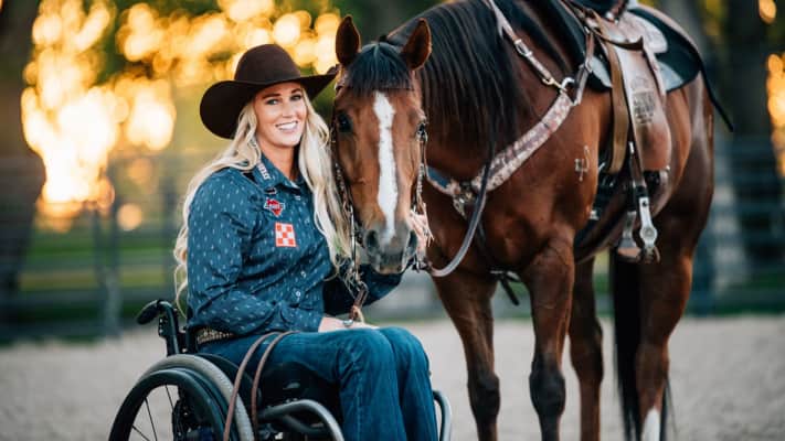 Amberley Snyder is a championship barrel racer. She also competed in pole bending and breakaway roping. In 2010, Snyder suffered a car crash that paralyzed her from the waist down. She adapted to the injury and kept competing.