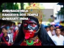 The Ambubachi Mela is an annual Hindu mela held at Kamakhya Temple in Guwahati, Assam. This yearly mela is celebrated during the monsoon season that happens to fall during the Assamese month Ahaar, around the middle of June when sun transit to the zodiac of Mithuna, when the Brahmaputra river is in spate.