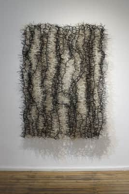 Amina Agueznay is a Moroccan visual artist and trained architect, known for her contemporary artworks. Her work has included jewellery designs and art installations, incorporating elements of Moroccan cultural heritage as well as materials such as textile buttons, paper, rose petals or burned plastic bags.